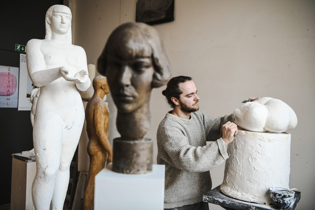 Tíhnutí k elementárním tvarům, využití principů architektury nebo konkrétních stavebních prvků, k naplnění dojmu z viděného – cítěného. Dojem nabytý osobní zkušeností interpretuje v sochařském jazyce. Důležité pro ně je vědomí hodnoty lidské práce. Jde mu o to dostat se k základu, k něčemu co nás všechny nevyhnutelně spojuje.